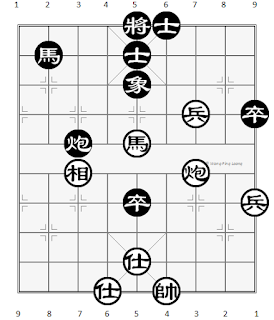 As seen on board, Red has gained a elephant. However, Black's main pieces were placed on strategic location. Red's left chariot has not develop yet. Black horse was threatening to capture central pawn in next move. Obviously, Black has gained initiative.